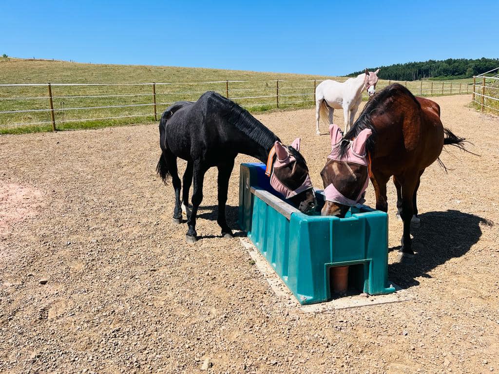 - Fütterung erfolgt über automatisierte, chipgesteuerte Stationen – individuell abgestimmt auf jedes Pferd.